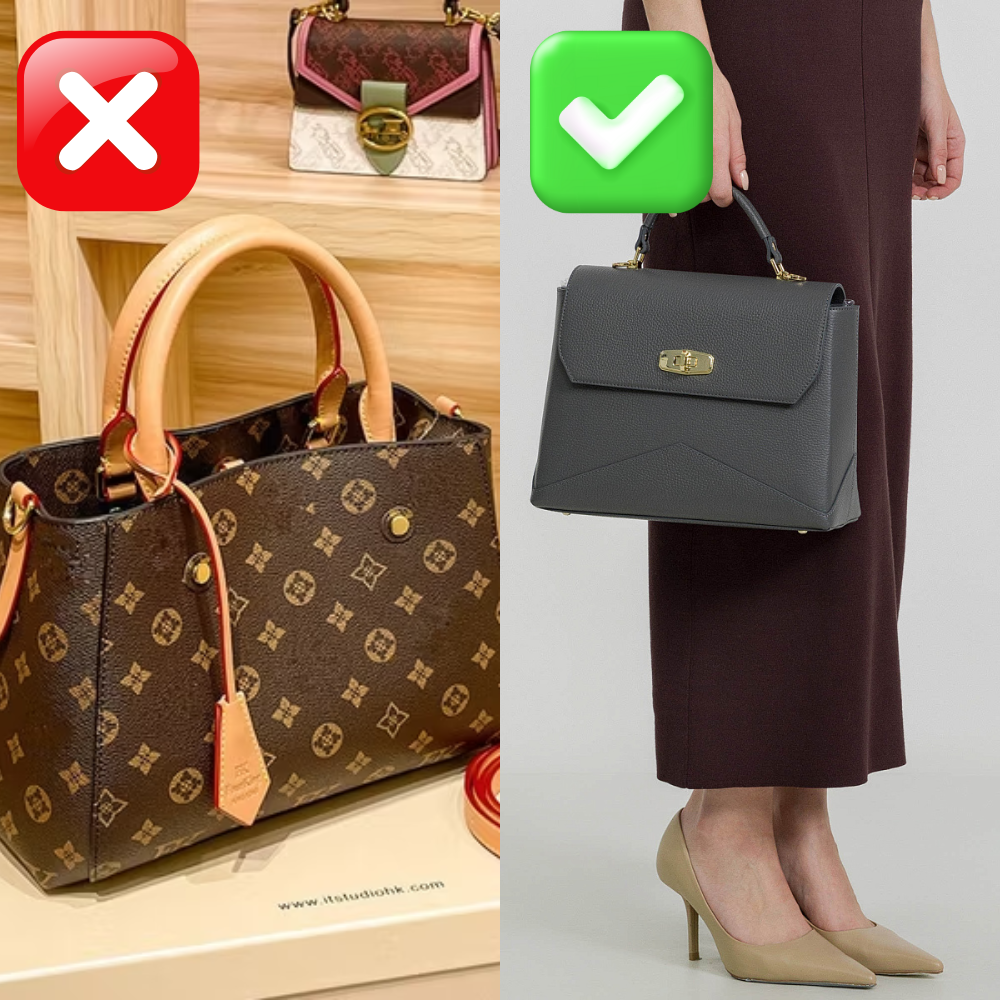 Сумки, перегруженные стразами, вышивкой или обилием логотипов, часто выглядят вычурно. То, что подойдет бунтующему подростку с синими волосами, серьезной леди будет явно не к лицу. У человека понимающего такое изделие вызовет одну ассоциацию – «ширпотреб». С этим аксессуаром даже самый изысканный наряд превратится в дешевку.